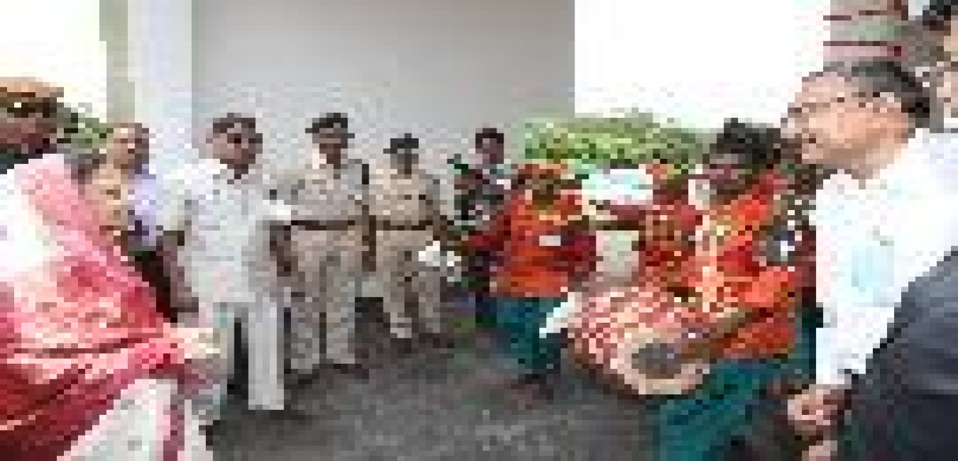 The President of India, Smt Pratibha Devisingh Patil interacting with the Tribal Artists at Raipur in Chhattisgarh on June 24, 2011