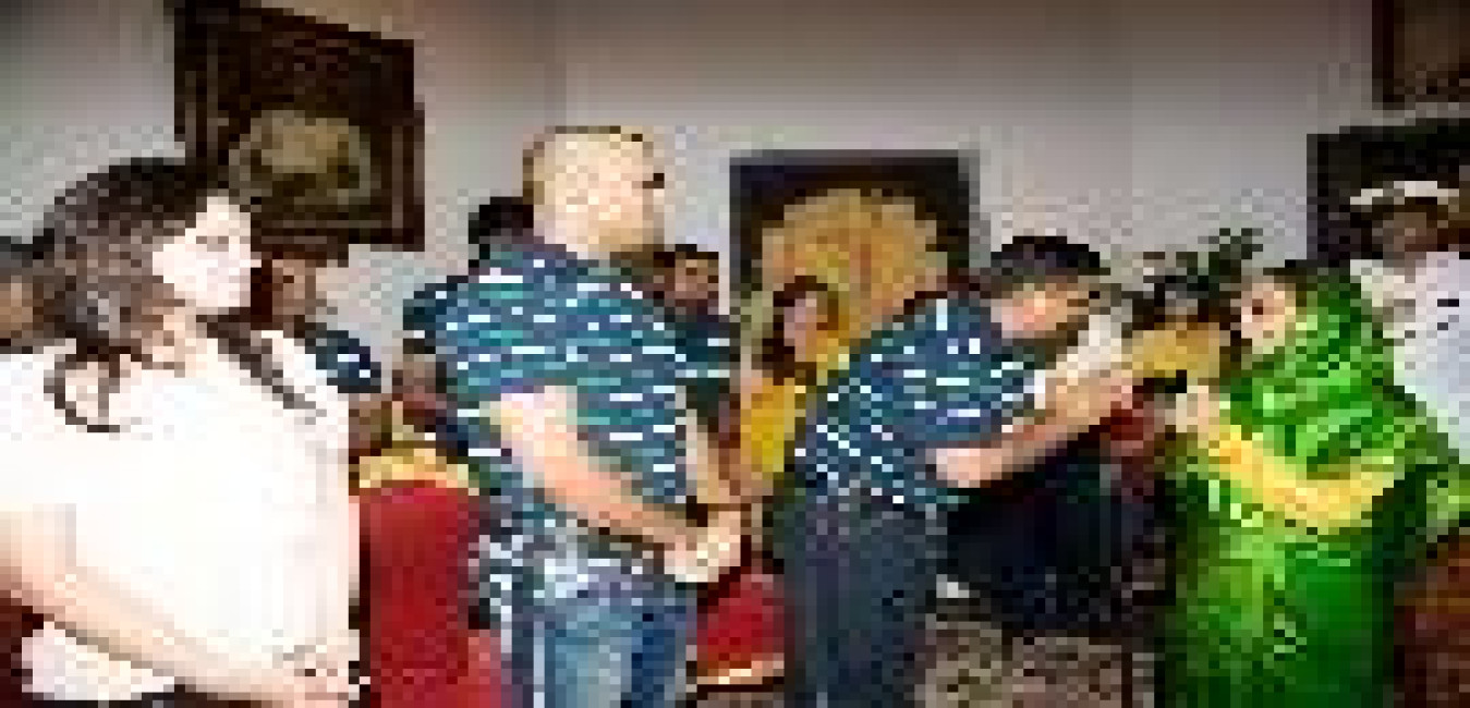 The President of India, Smt Pratibha Devisingh Patil interacting with the victorious Indian Cricket Team after they won the World Cup Cricket with their Family Members at Raj Bhavan of Mumbai in Maharashtra on April 03, 2011