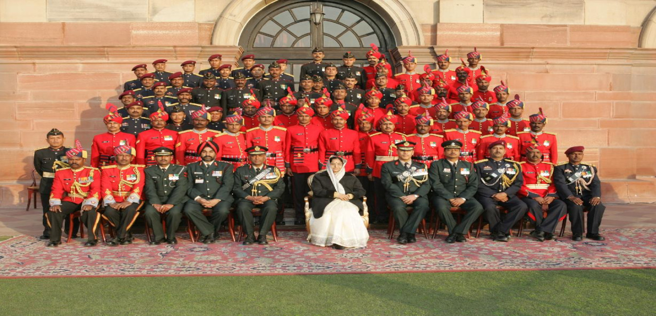 The President of India, Smt Pratibha Devisingh Patil posing for a Group Photographs with Bandsmen at Rashtrapati Bhavan in New Delhi on Jan 31, 2008