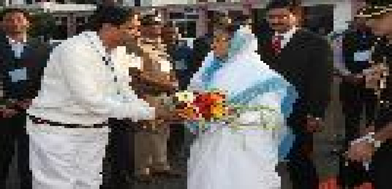 The President of India, Smt Pratibha Devisingh Patil being welcomed by the Governor of Andhra Pradesh, Shri E S L Narasimhan and Chief Minister of Andhra Pradesh, Shri Nallari Kiran Kumar Reddy at Hyderabad Airport in Andhra Pradesh on Dec 24, 2010