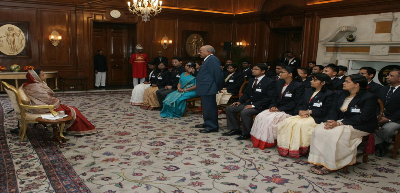 The President of India, Smt Pratibha Devisingh Patil interacting with Students from Shri Shah K L Institute, Bhavnagar at Rashtrapati Bhavan in New Delhi on Feb 19, 2010