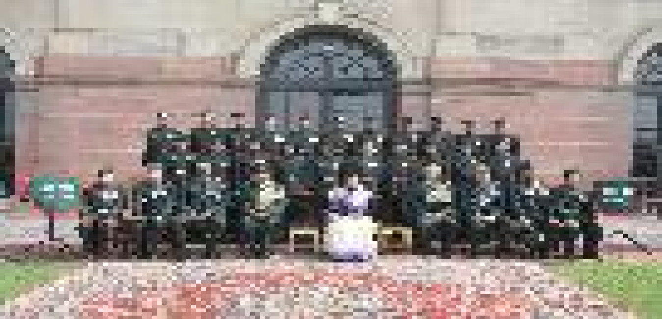 The President of India, Smt Pratibha Devisingh Patil posing for a Group Photographs with Tri Service Band Contingents at Rashtrapati Bhavan in New Delhi on Jan 30, 2010
