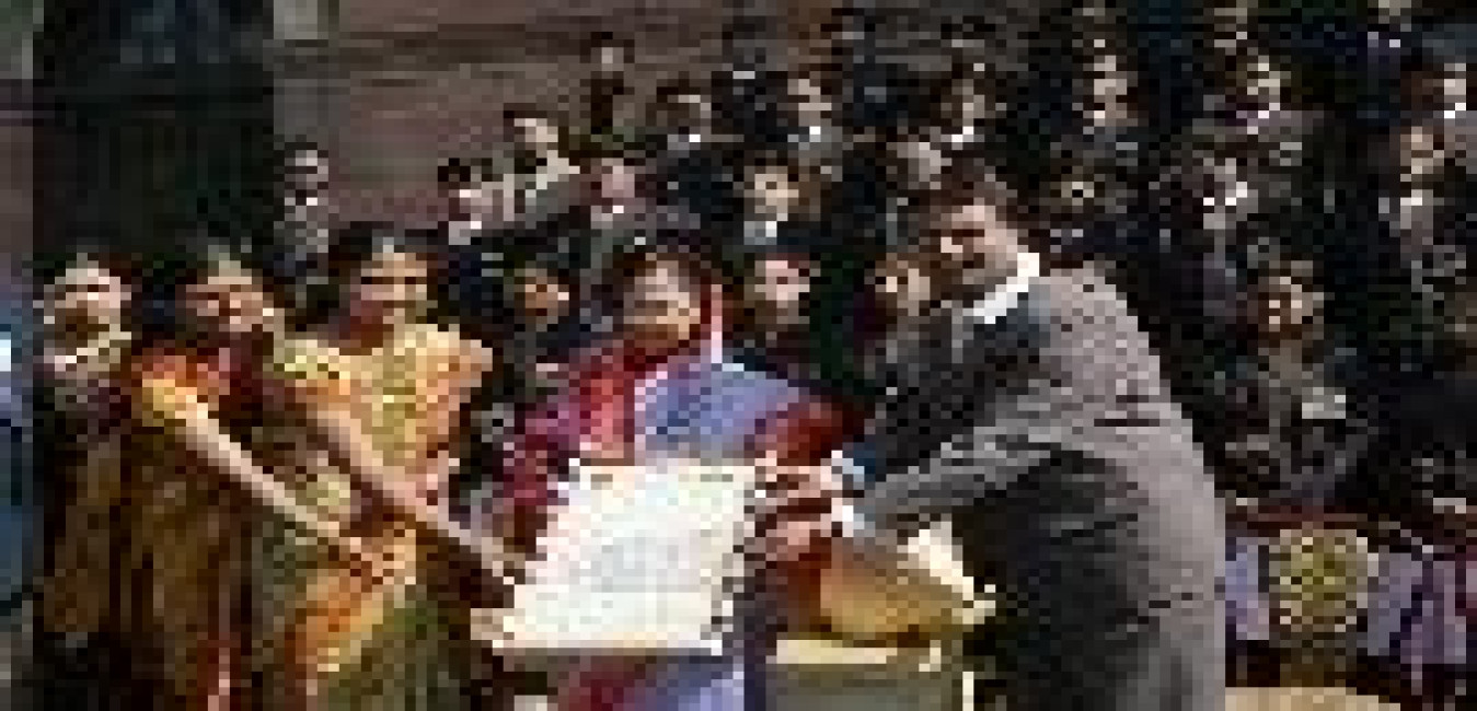 The President of India, Smt Pratibha Devisingh Patil interacting with the Group of Tribal Guest, Tableaux Artists, Tractor Drivers, NSS Volunteer at Rashtrapati Bhavan in New Delhi on Jan 27, 2010