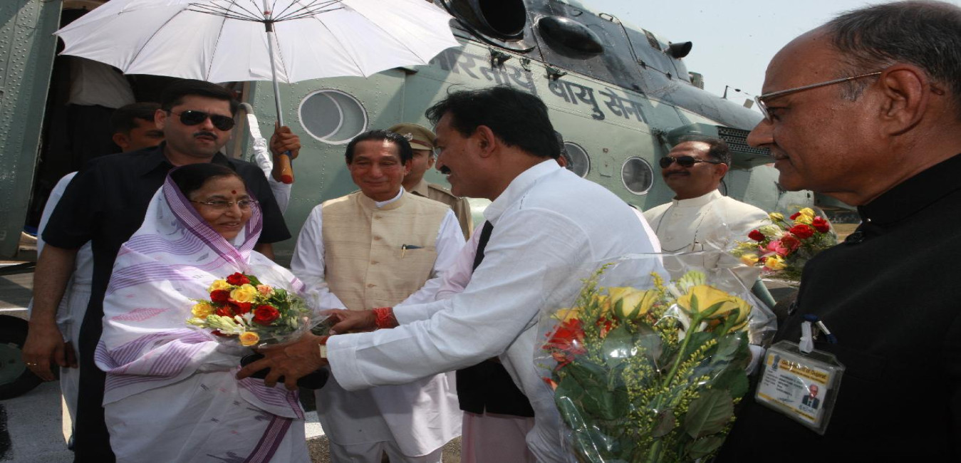 The President of India, Smt Pratibha Devisingh Patil arriving at Anand Helipad in Gujarat on Oct 01, 2009
