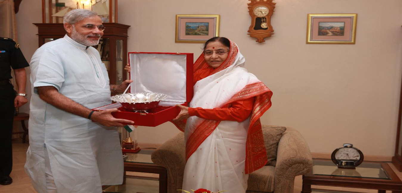 The President of India, Smt Pratibha Devisingh Patil during Felicitated by the Chief Minister of Gujarat, Shri Narendra Modi at the Pubic Reception for the President of India at Gandhinagar in Gujarat on Sep 30, 2009