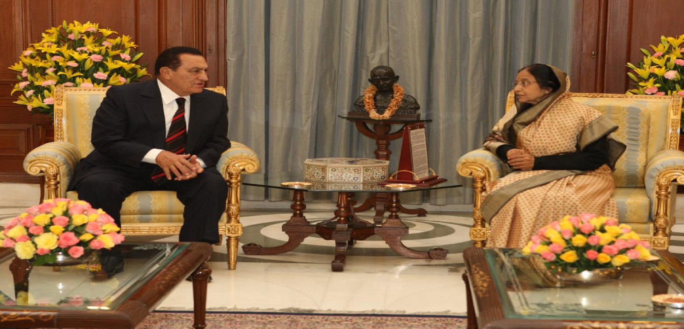 The President of the Arab Republic of Egypt, HE Mr Mohamed Hosny Mubarak calling on the President of India, Smt Pratibha Devisingh Patil at Rashtrapati Bhavan in New Delhi on Nov 18, 2008