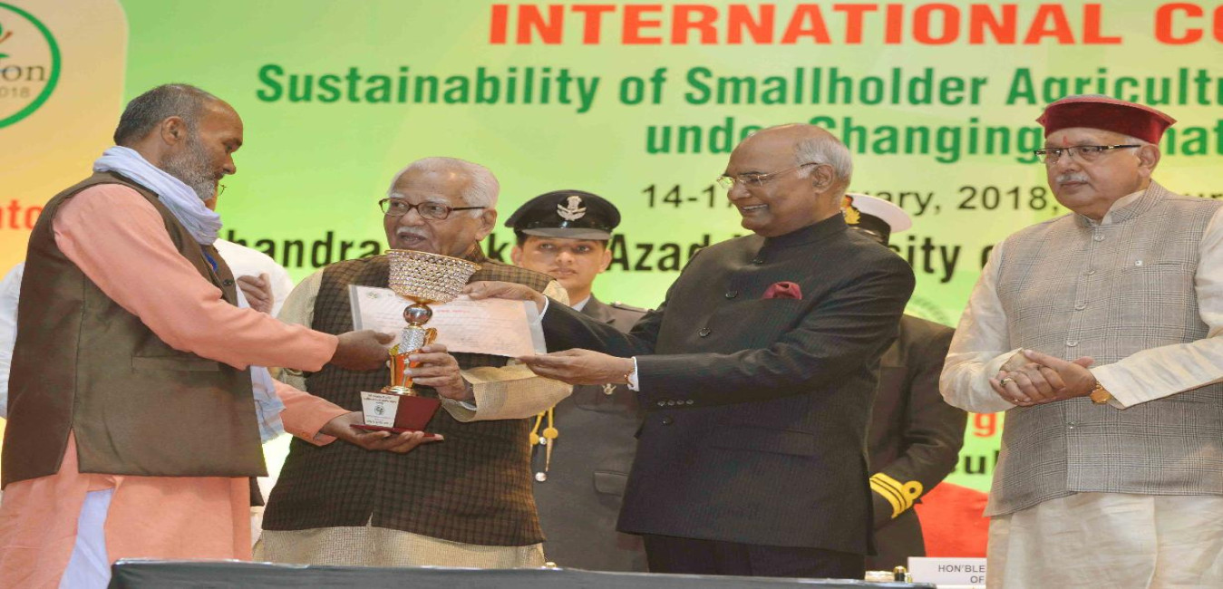 The President of India, Ram Nath Kovind presented awards to the Scientists and Progressive Farmers, at the inauguration of the International Conference "Agricon 2018" and "Agriexpo 2018", at Chandra Shekhar Azad University of Agriculture & Technology, Kanpur, in Uttar Pradesh on February 14, 2018.