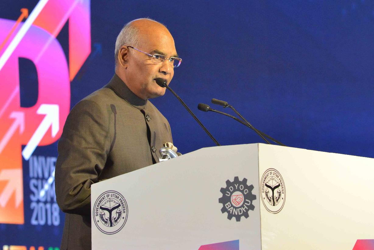 The President of India, Shri Ram Nath Kovind addressing the concluding session of Uttar Pradesh Investors Summit 2018, at Lucknow, in Uttar Pradesh on February 22, 2018.
