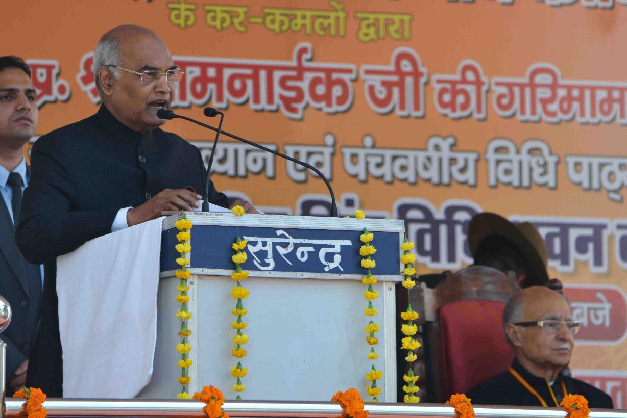 The President of India, Ram Nath Kovind delivering Barrister Narendrajit Singh Memorial lecture, at Vijkramajit Singh Sanatan Dharma College, Kanpur, in Uttar Pradesh on February 14, 2018.