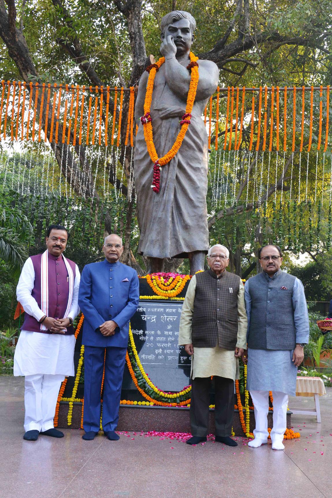 The President of India, Shri Ram Nath Kovind paying floral tributes at the Statue of Shri Chandra Sekhar Azad, at Allahabad, in Uttar Pradesh on December 15, 2017.