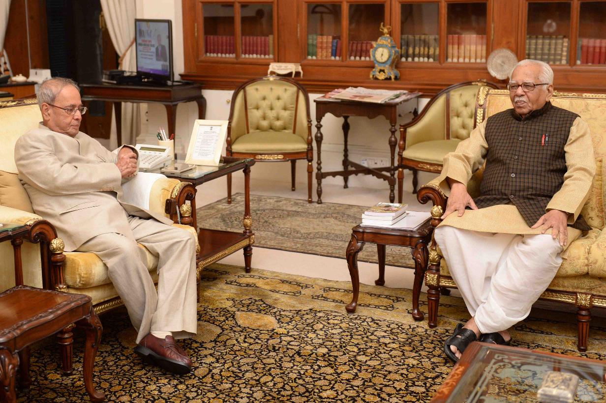 The Governor of Uttar Pradesh, Shri Ram Naik calling on the President of India, Shri Pranab Mukherjee, at Rashtrapati Bhavan on August 30, 2016.