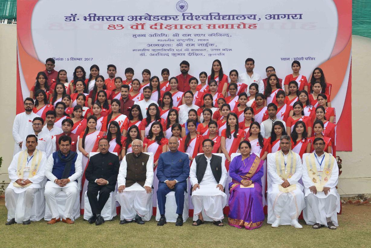 The President of India, Shri Ram Nath Kovind with the Gold Medalist students of the University and recipients of Honoris Causa, at the 83rd Convocation of Dr. Bhimrao Ambedkar University, in Agra, Uttar Pradesh on December 05, 2017.