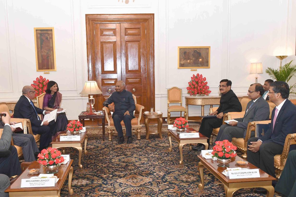 The Minister of Foreign Affairs of the Republic of Algeria, H.E. Mr. Abdelkader Messahel calling on the President of India, Shri Ram Nath Kovind, at Rashtrapati Bhavan on January 31, 2019.