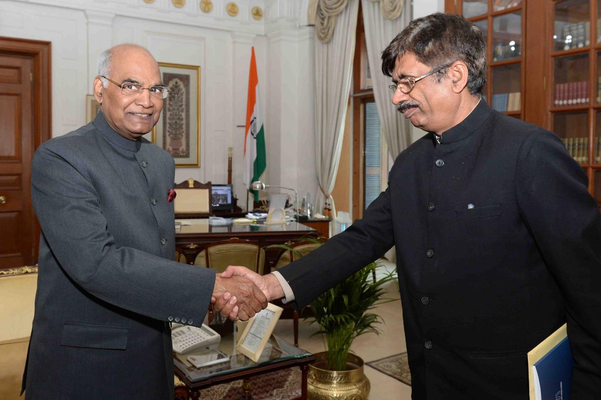 The High Commissioner of India to Mauritius, Shri Abhay Thakur meeting with the President of India, Shri Ram Nath Kovind, at Rashtrapati Bhavan on February 21, 2018.