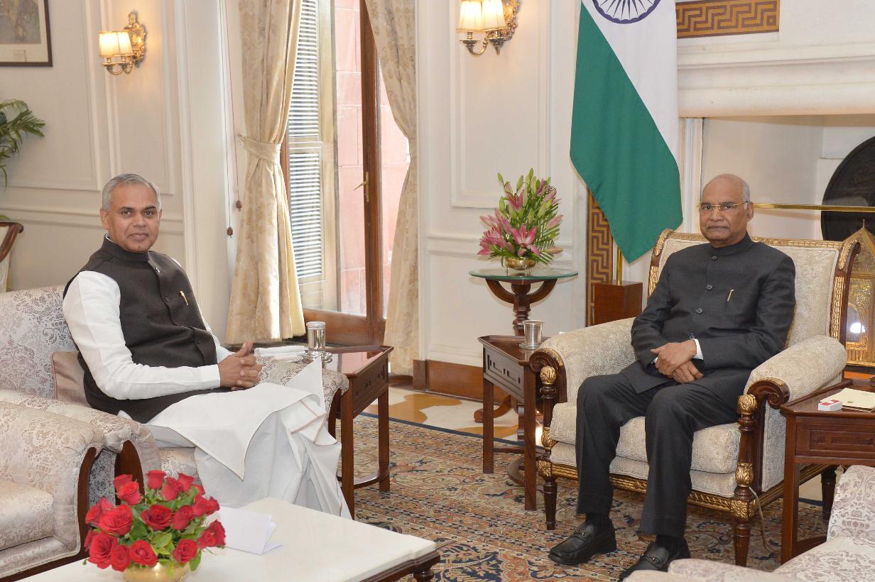 The Governor of Gujarat, Shri Acharya Devvrat meeting with the President of India, Shri Ram Nath Kovind, at Rashtrapati Bhavan on November 22, 2019.