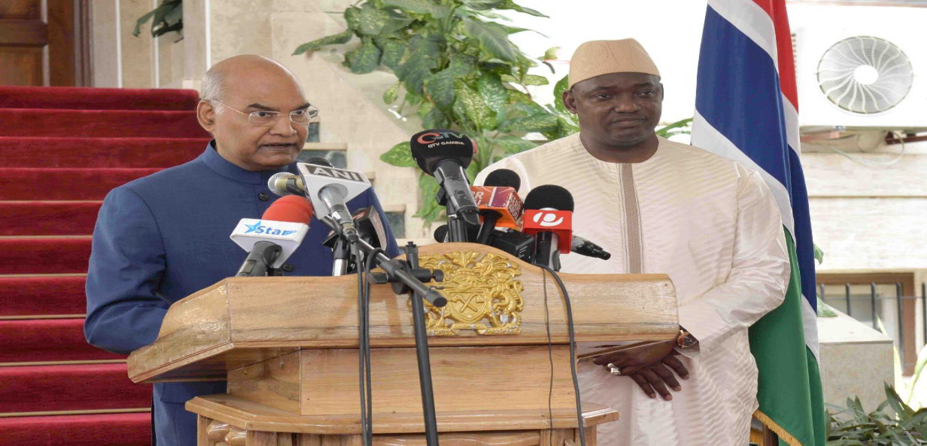 The President of India, Shri Ram Nath Kovind and the President of The Gambia, H.E. Mr. Adama Barrow, during the press statements, at State House, in Banjul, The Gambia on July 31, 2019.