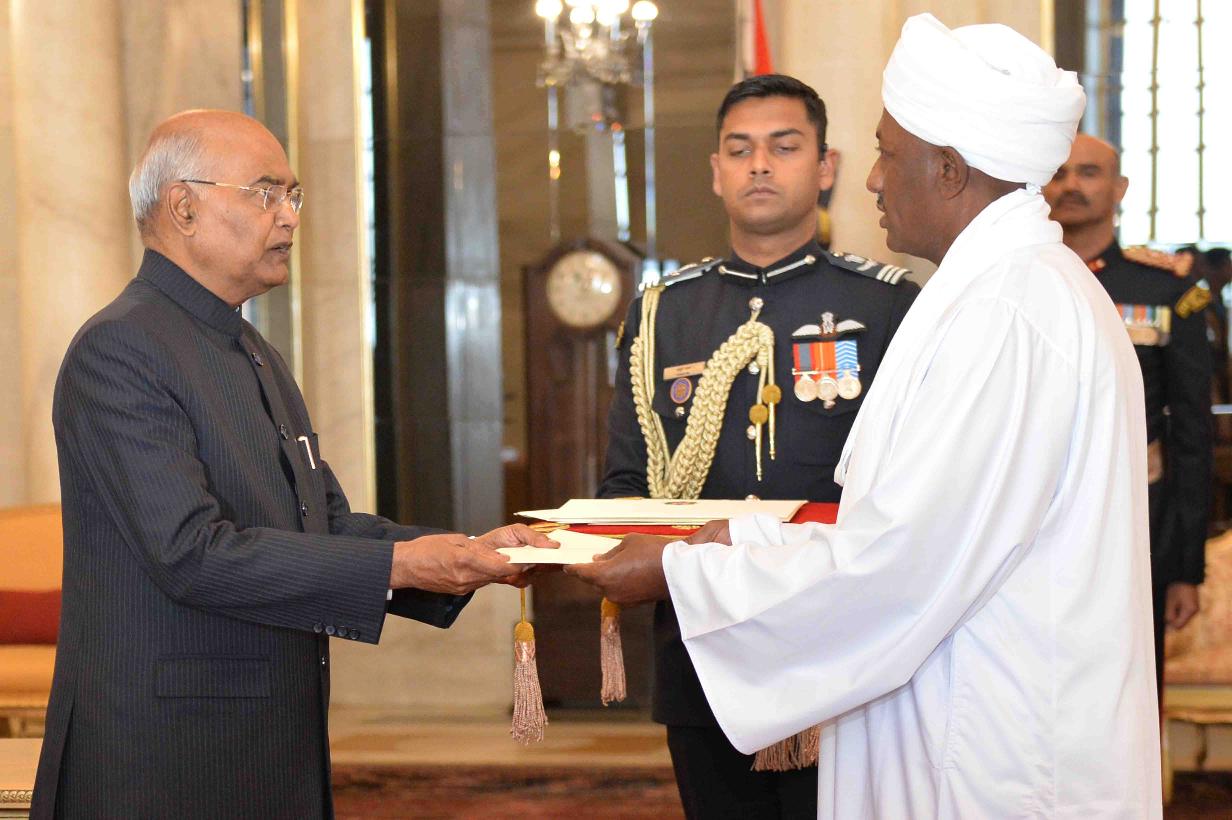 The Ambassador-designate of the Republic of Sudan, H.E. Mr. Ahmed Yousif Mohamed Elsiddig presenting his credentials to the President of India, Shri Ram Nath Kovind, at Rashtrapati Bhavan on February 08, 2019.