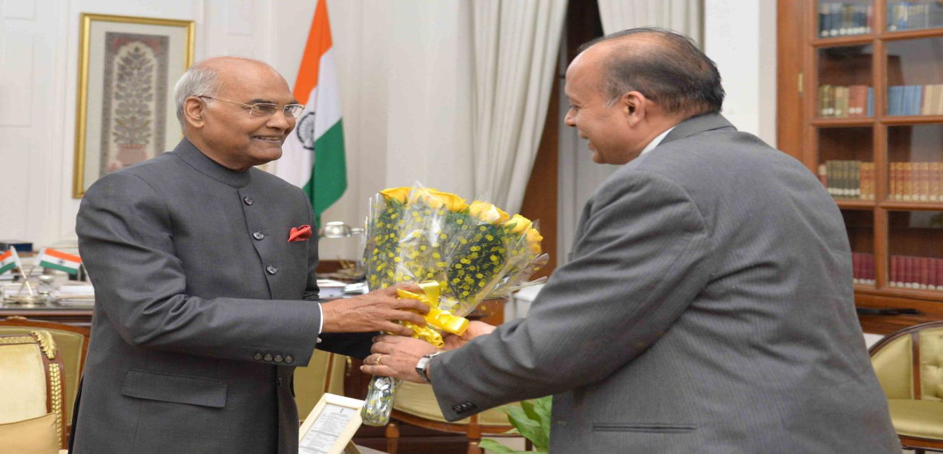 The Secretary (Defence Production), Ministry of Defence, Dr. Ajay Kumar meeting with the President of India, Shri Ram Nath Kovind, at Rashtrapati Bhavan on December 13, 2017.