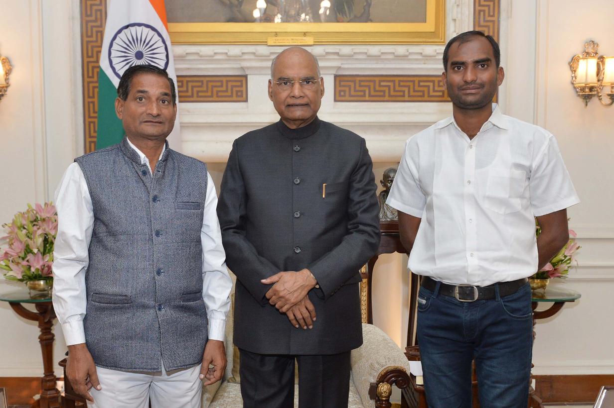 Shri Ajay Kumar Yadav along with his son from Kanpur meeting with the President of India, Shri Ram Nath Kovind, at Rashtrapati Bhavan on November 08, 2019.