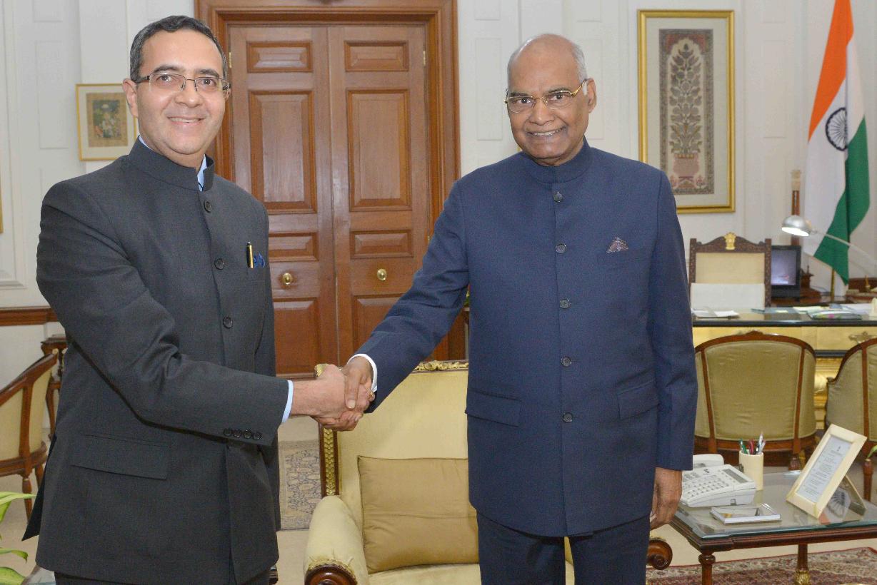 The Ambassador-designate of India to Denmark, Shri Ajit Gupte meeting with the President of India, Shri Ram Nath Kovind, at Rashtrapati Bhavan on August 30, 2017.