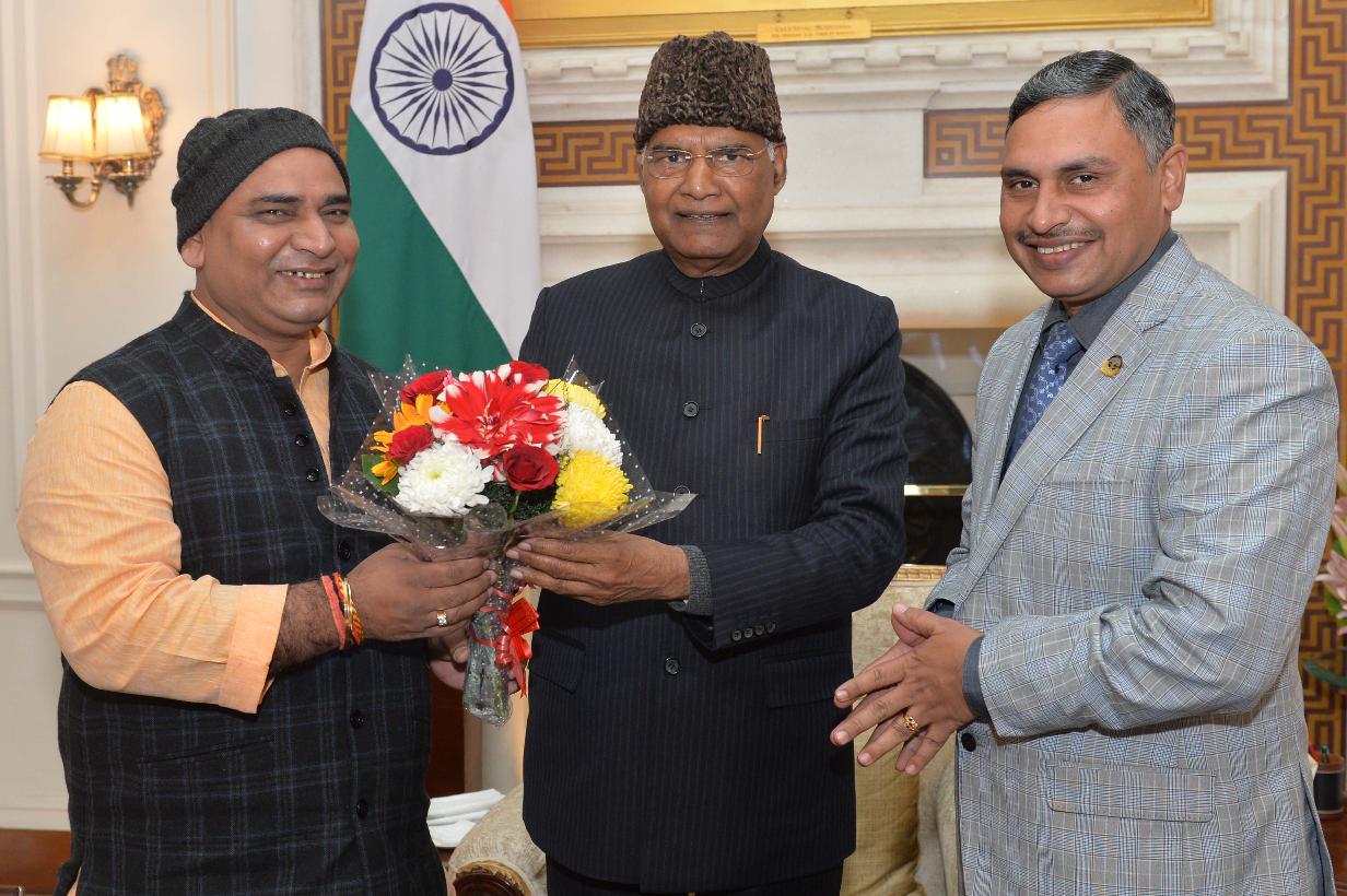 Shri Ajit Singh Pal, MLA from Sikandra Vidhansabha, Kanpur Dehat along with Shri Ashish Singh and Shri Rishabh Kothari from Kanpur meeting with the President of India, Shri Ram Nath Kovind, at Rashtrapati Bhavan on January 16, 2018.