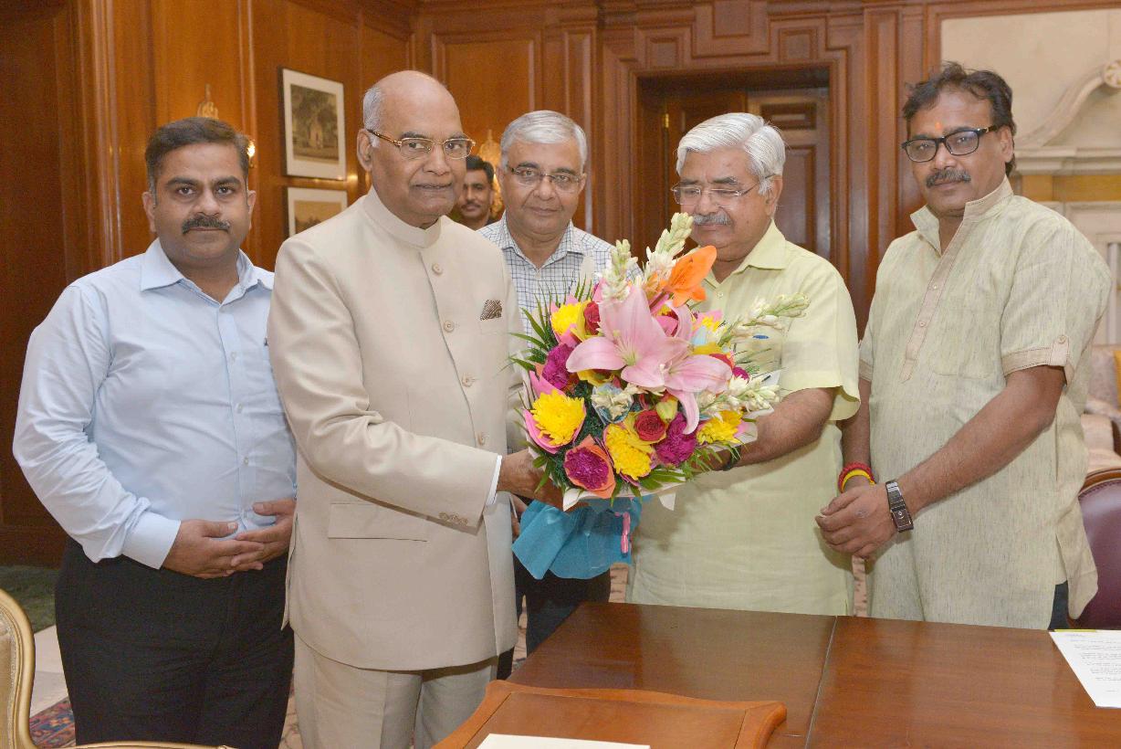 Shri Alok Kumar, Patron, Dadhichi Deh Dan Samiti meeting with the President of India, Shri Ram Nath Kovind, at Rashtrapati Bhavan on May 28, 2018.