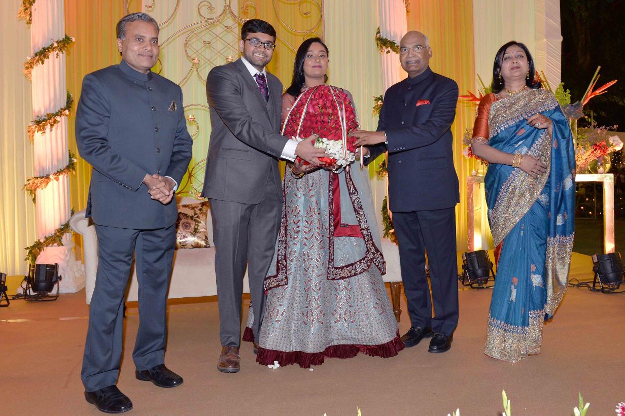 The President of India, Shri Ram Nath Kovind attending the Wedding Reception of Ms. Anhiti, daughter of Shri Amulya Patnaik, Commissioner of Police, Delhi, in New Delhi on March 09, 2019.