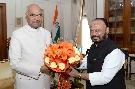 Shri Anandrao Adsul, MP (LS) & Chairman, Departmentally Related Standing Committee on Chemicals & Fertilizers meeting with the President of India, Shri Ram Nath Kovind, at Rashtrapati Bhavan on August 08, 2018.