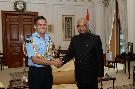 The President of India, Shri Ram Nath Kovind presenting Aiguillettes to Gp. Capt. Anuj Gupta, DMSP-designate, at Rashtrapati Bhavan on July 26, 2017.