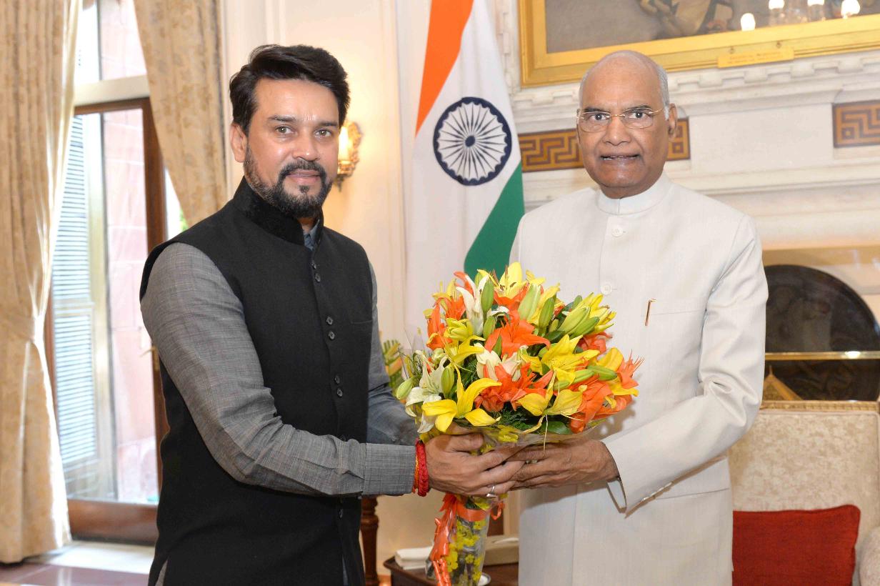 The Minister of State for Finance and Corporate Affairs, Shri Anurag Singh Thakur meeting with the President of India, Shri Ram Nath Kovind, at Rashtrapati Bhavan on June 22, 2019.