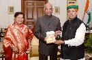 The Minister of State for Parliamentary Affairs, Water Resources, River Development and Ganga Rejuvenation, Shri Arjun Ram Meghwal along with his wife meeting with the President of India, Shri Ram Nath Kovind, at Rashtrapati Bhavan on May 12, 2018.