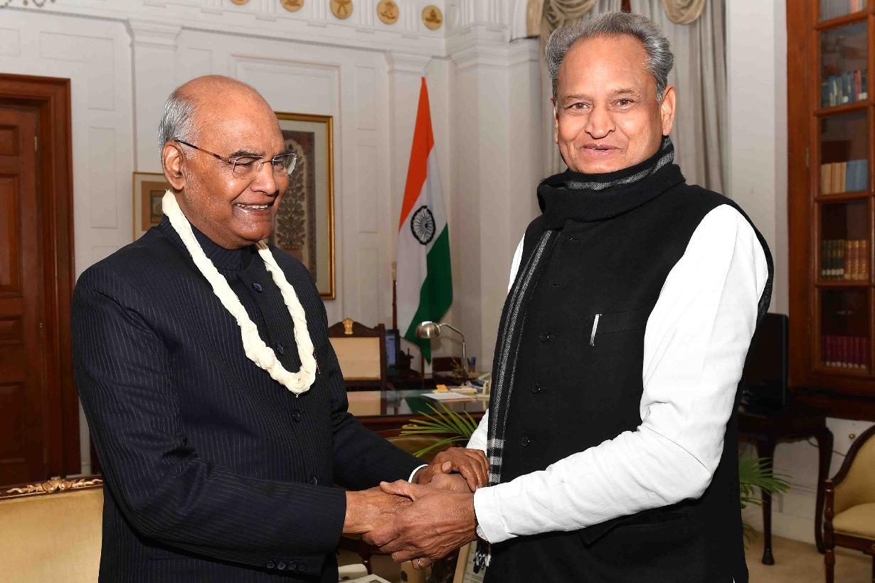 The Chief Minister of Rajasthan, Shri Ashok Gehlot meeting with President of India, Shri Ram Nath Kovind, at Rashtrapati Bhavan on February 02, 2019.