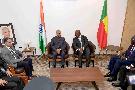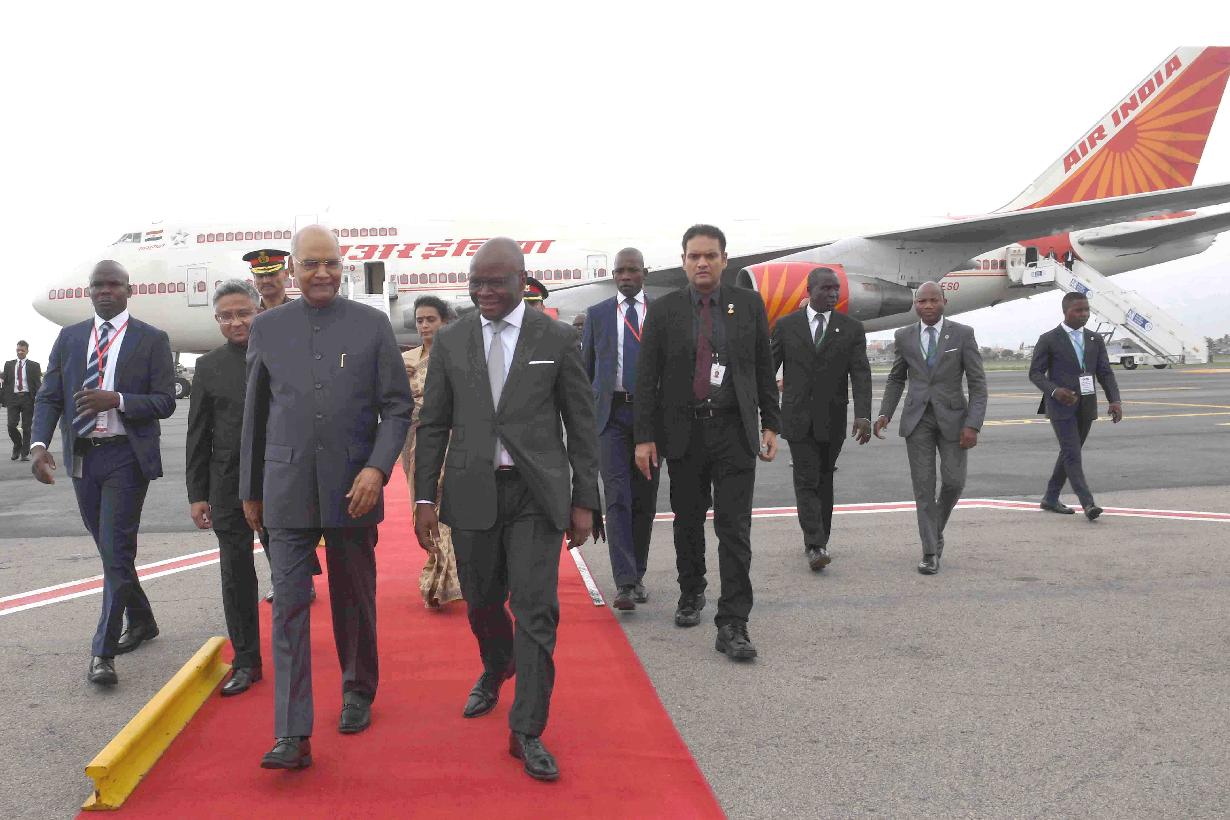 The President of India, Shri Ram Nath Kovind interacting with the Foreign Minister of Benin, H.E. Mr. Aurelien Agbenonci, at Cardinal Bernadin Gantin de Cotonou International Airport, Cotonou, in Benin on July 28, 2019.