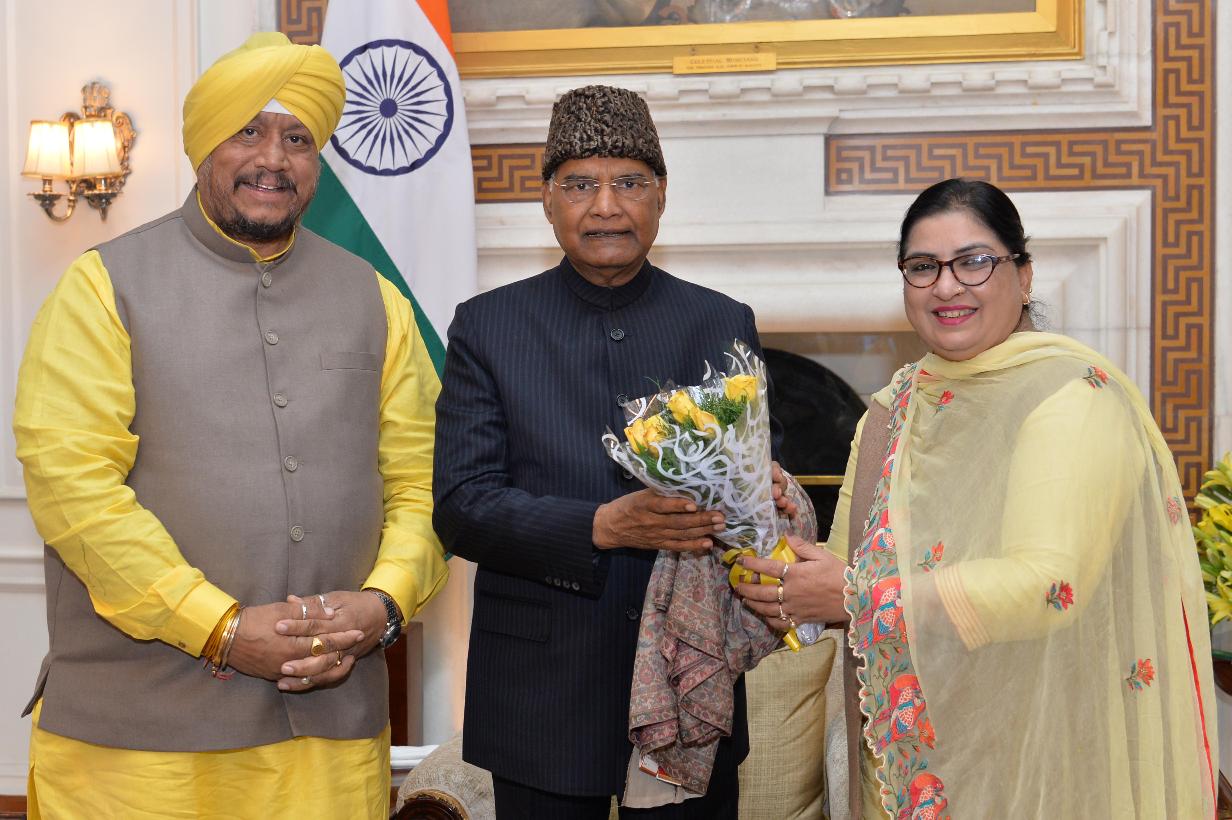 Shri Avtar Singh, Mayor, North Delhi Municipal Corporation along with his wife Smt. Mohan Jeet Kaur meeting with the President of India, Shri Ram Nath Kovind, at Rashtrapati Bhavan on January 16, 2020.