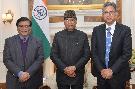 Prof. B.S. Sahay, Director, Indian Institute of Management (IIM) Jammu along with Dr. Milind Kamble, Chairman, Board of Governors, IIM Jammu meeting with the President of India, Shri Ram Nath Kovind, at Rashtrapati Bhavan on January 14, 2020.