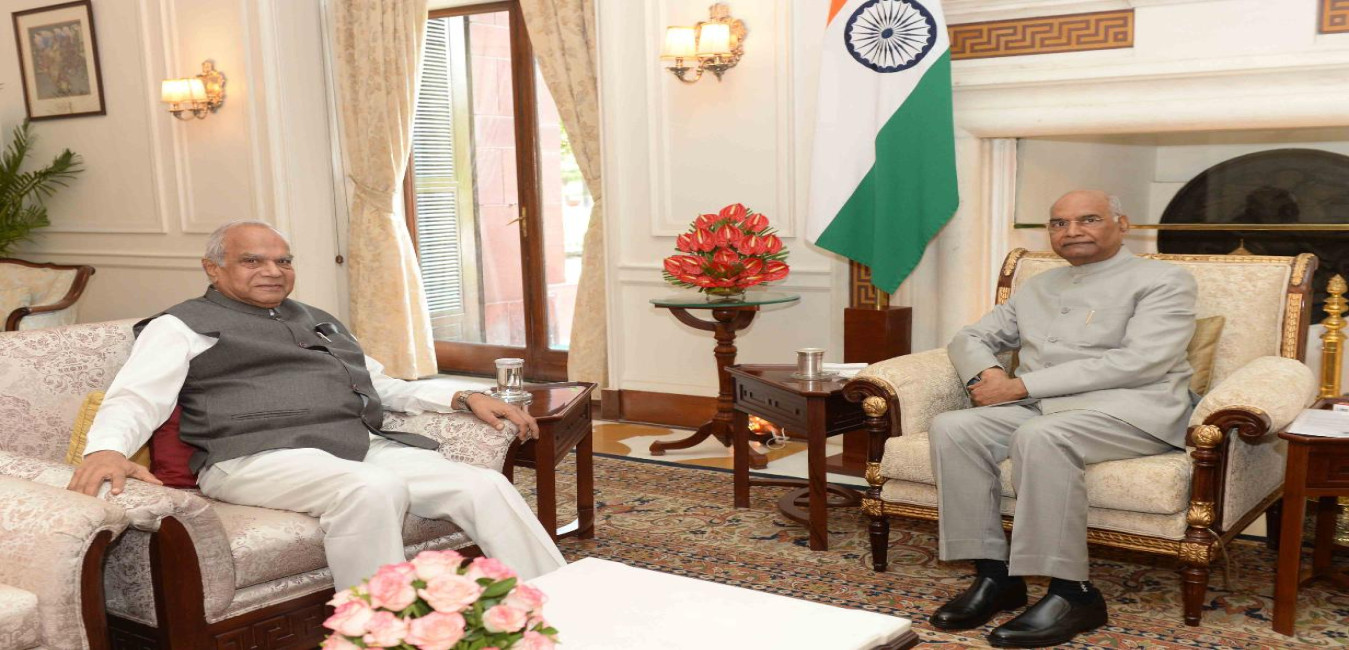 The Governor of Tamil Nadu, Shri Banwarilal Purohit meeting with the President of India, Shri Ram Nath Kovind, at Rashtrapati Bhavan on August 08, 2019.