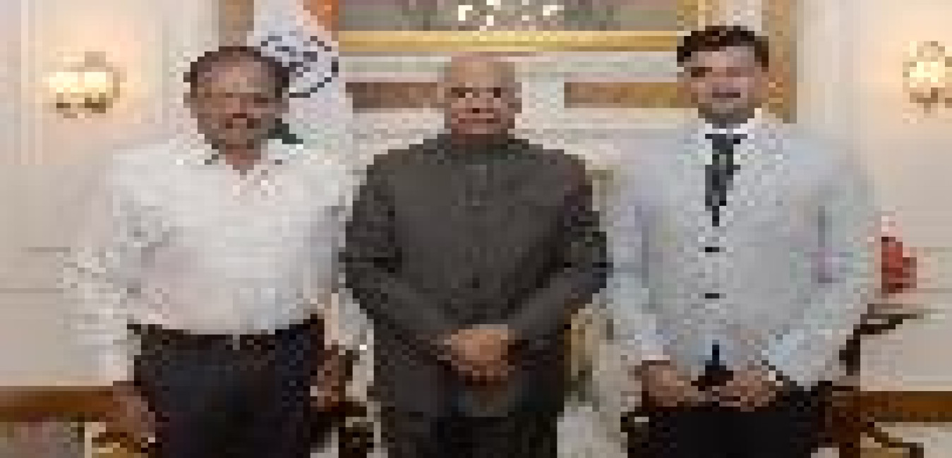 Shri Basant Kumar along with his son meeting with the President of India, Shri Ram Nath Kovind, at Rashtrapati Bhavan on November 01, 2019.