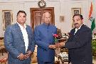 Shri Bheem Lal Arya, Ex-MLA, Uttarakhand along with Shri Sachin Joshi meeting with the President of India, Shri Ram Nath Kovind, at Rashtrapati Bhavan on March 01, 2019.