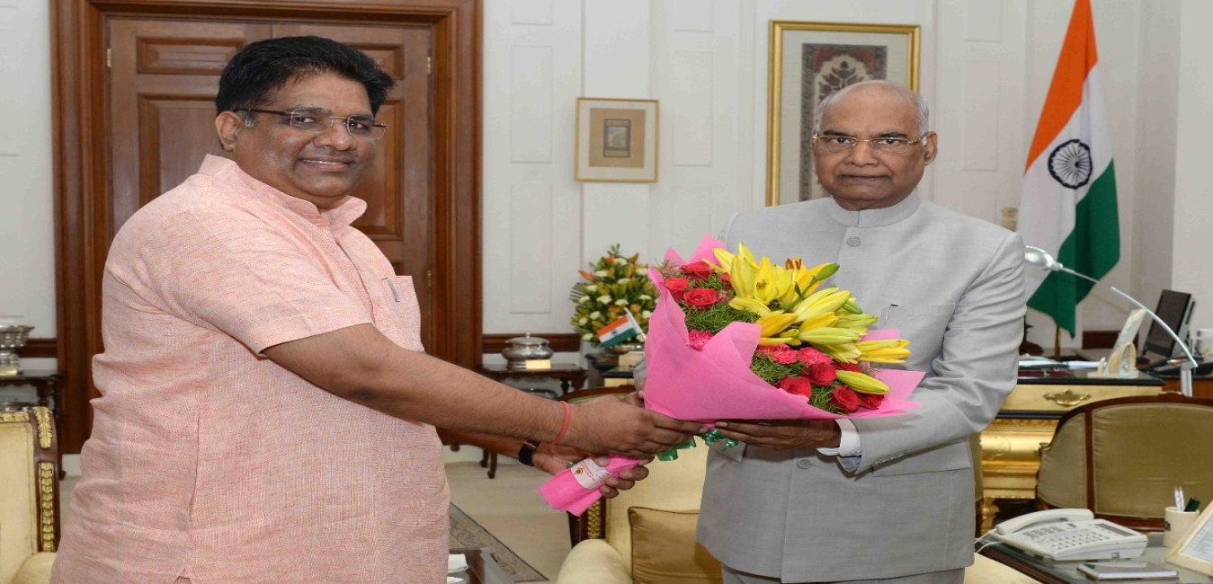 The Minister of Environment, Forest & Climate Change and Labour and Employment, Shri Bhupender Yadav calling on the President of India, Shri Ram Nath Kovind, at Rashtrapati Bhavan on July 15, 2021.