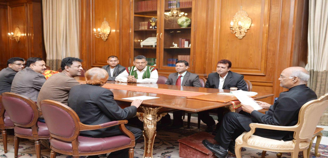 Shri Biswendu Bhattacharjee with others from Forum for Protection of Journalists, Tripura meeting with the President of India, Shri Ram Nath Kovind, at Rashtrapati Bhavan on December 05, 2017.