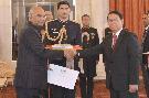 The Ambassador-designate of the Lao People's Democratic Republic, H.E. Mr. Bounneme Chouanghom presenting his credentials to the President of India, Shri Ram Nath Kovind, at Rashtrapati Bhavan on January 10, 2019.