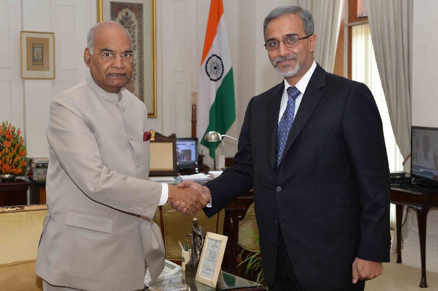 The Ambassador-designate of India to Russia, Shri D.B. Venkatesh Verma meeting with the President of India, Shri Ram Nath Kovind, at Rashtrapati Bhavan on September 17, 2018.