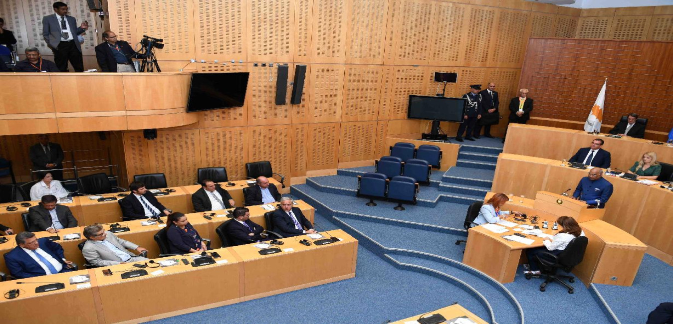 The President of India, Shri Ram Nath Kovind addressing the members of the House of Representatives of Cyprus, in Nicosia, Cyprus on September 03, 2018.