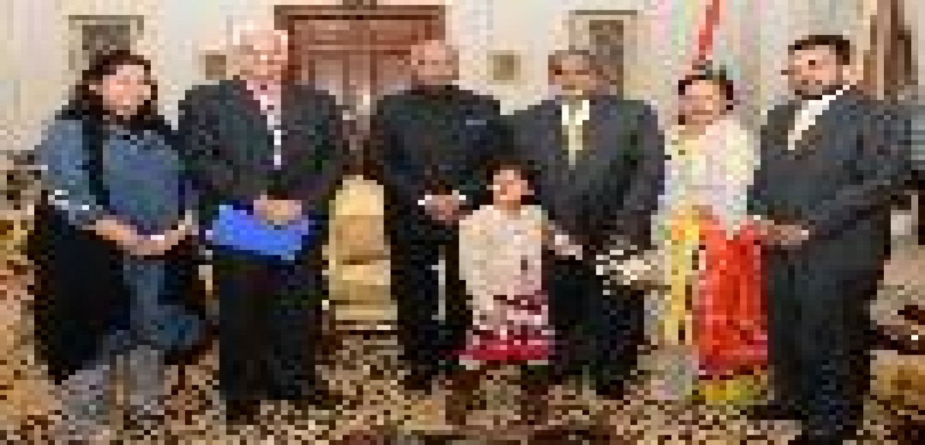 Dr. Devender Kumar Modi, Chairperson, Dr. KN Modi University and Dr. Kedar Nath Modi Foundation, Delhi alongwith his family members meeting with the President of India, Shri Ram Nath Kovind, at Rashtrapati Bhavan on December 22, 2017.