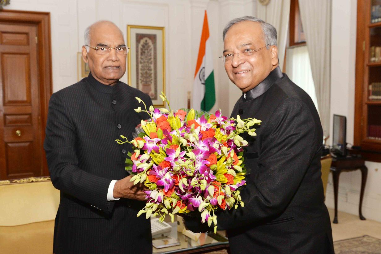 The former Chairman, Competitive Commission of India, Shri Dhanendra Kumar meeting with the President of India, Shri Ram Nath Kovind, at Rashtrapati Bhavan on December 06, 2017.