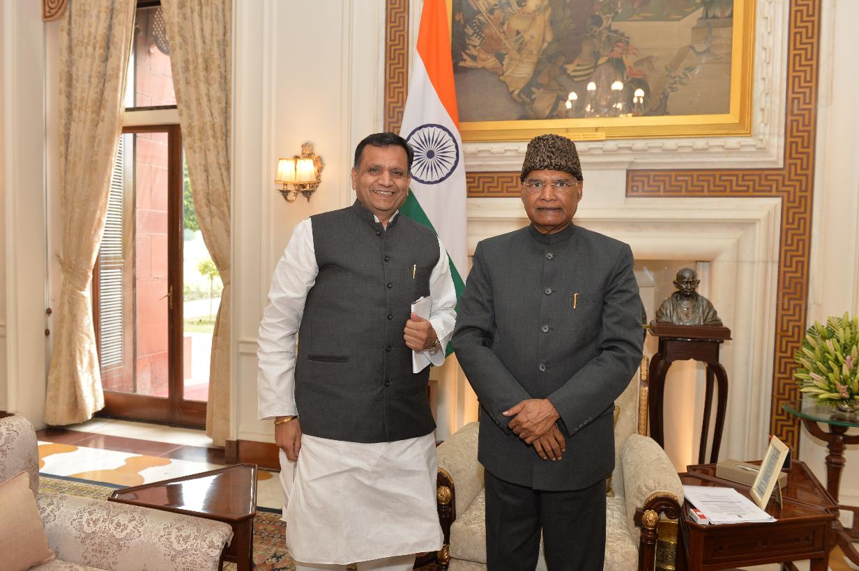 The Minister for Social Justice & Empowerment and Sainik Welfare, Himachal Pradesh, Dr. (Col.) Dhani Ram Shandil alongwith a delegation meeting with the President of India, Shri Ram Nath Kovind, at Rashtrapati Bhavan on August 18, 2017.