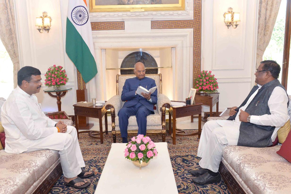 The Minister of Petroleum and Natural Gas & Skill Development and Entrepreneurship, Shri Dharmendra Pradhan meeting with the President of India, Shri Ram Nath Kovind, at Rashtrapati Bhavan on September 21, 2017.
