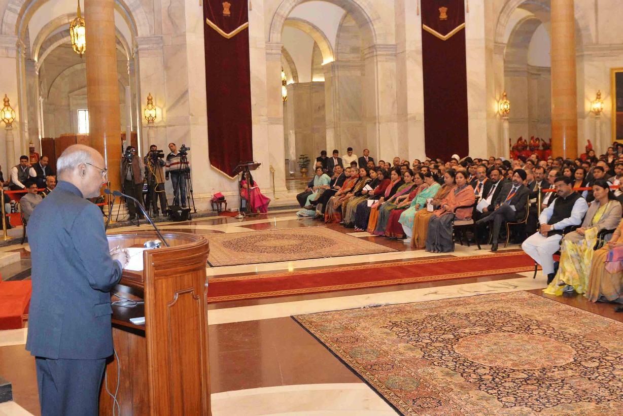The President of India, Shri Ram Nath Kovind, hosting Pradhan Mantri LPG Panchayat, at Rashtrapati Bhavan on February 13, 2018.