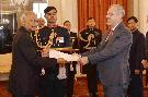 The Ambassador-designate of Paraguay, H.E. Mr. Fleming Raul Duarte Ramos presenting his credentials to the President of India, Shri Ram Nath Kovind, at Rashtrapati Bhavan on February 20, 2018.