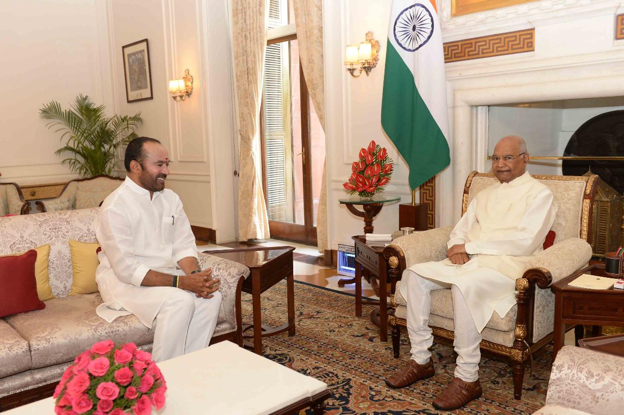 The Minister of State for Home Affairs, Shri G. Kishan Reddy meeting with the President of India, Shri Ram Nath Kovind, at Rashtrapati Bhavan on June 15, 2019.